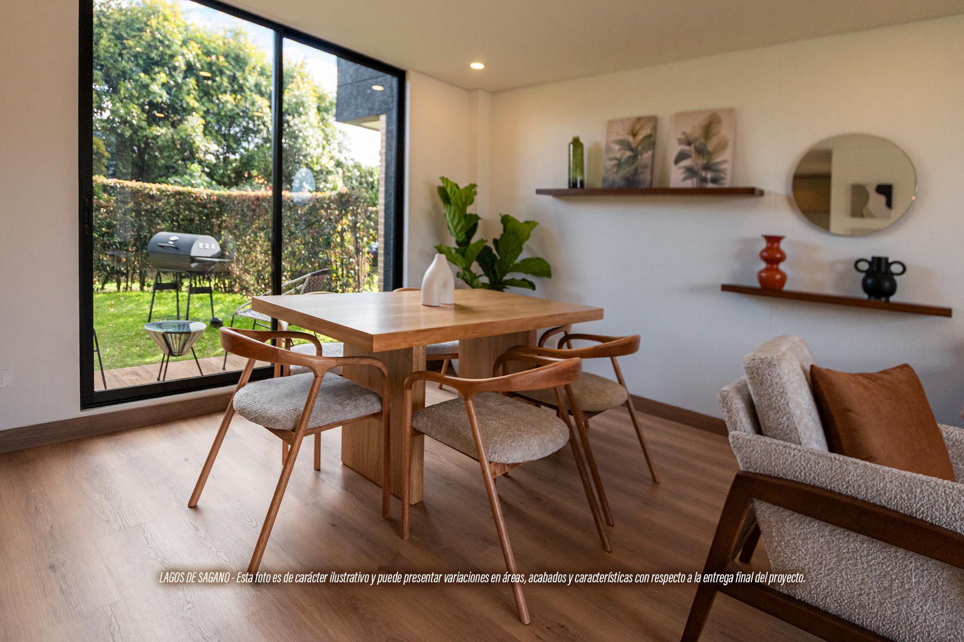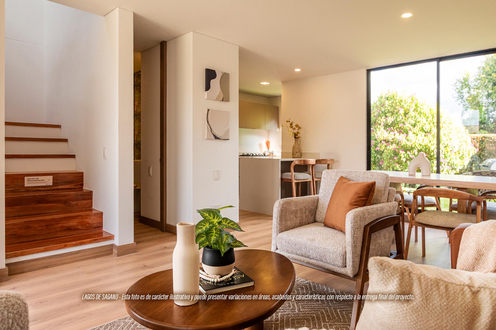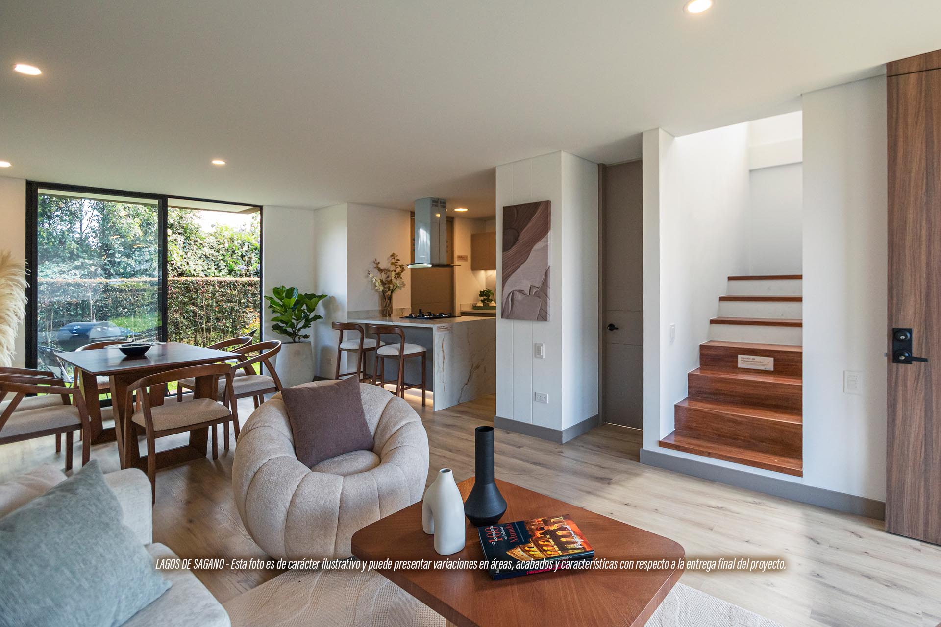 Lagos de Sagano combina diseño contemporáneo y vida verde en Cajicá: casas de dos pisos de 85 a 109 m² con jardín interior, dos parqueaderos privados, depósito, zona de lavandería y balcón en la habitación principal; techos inclinados y fachadas triangulares que le dan identidad. Configuraciones de 2 o 3 habitaciones con amplios espacios sociales, todo rodeado de lagos paisajísticos de origen antrópico y senderos naturales que ofrecen confort y estilo, en un entorno con alta proyección de valorización, a pocos minutos de Bogotá. Construido por Promotora Furatena, un consorcio entre Inversiones Milenium y Morandi Construcciones.