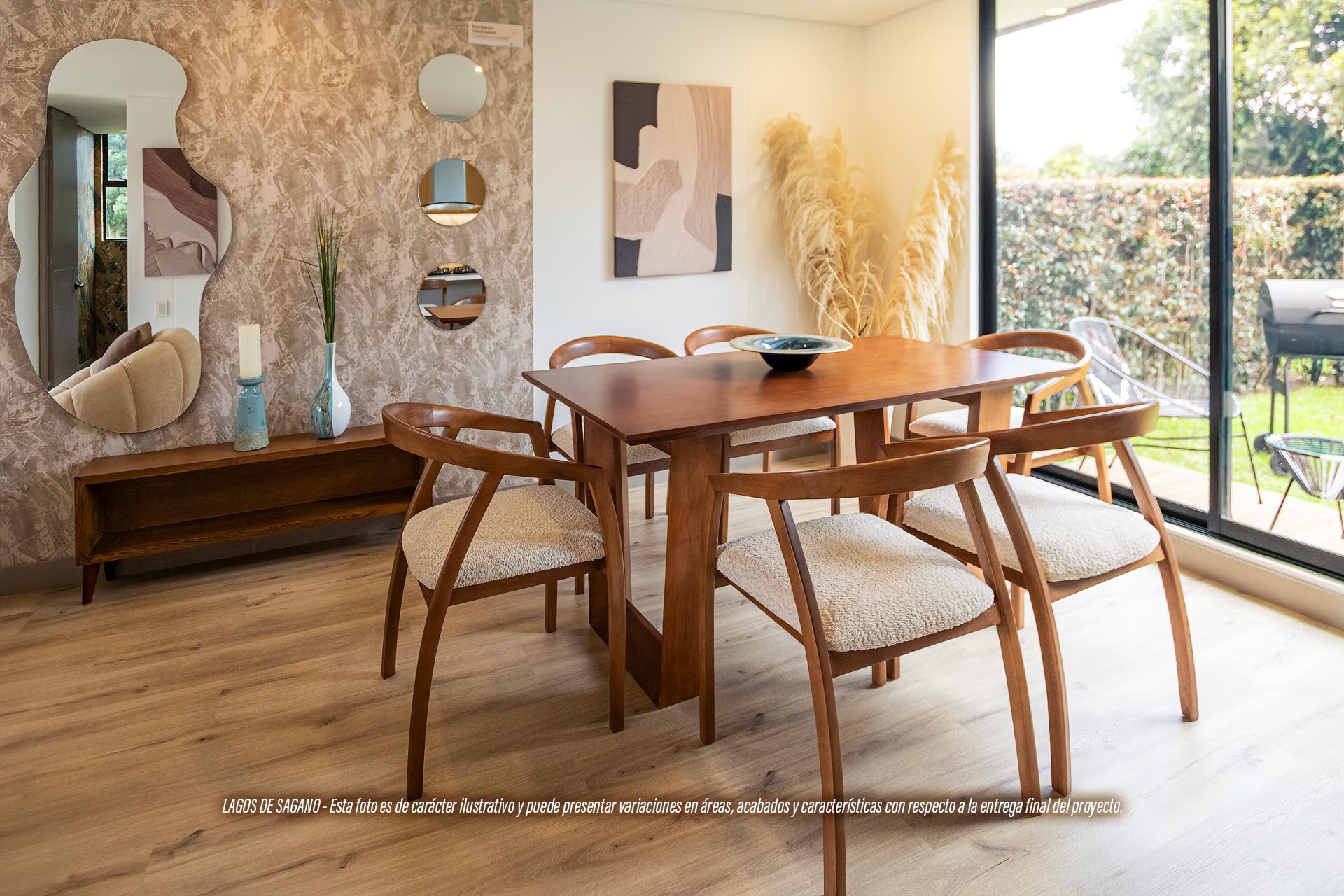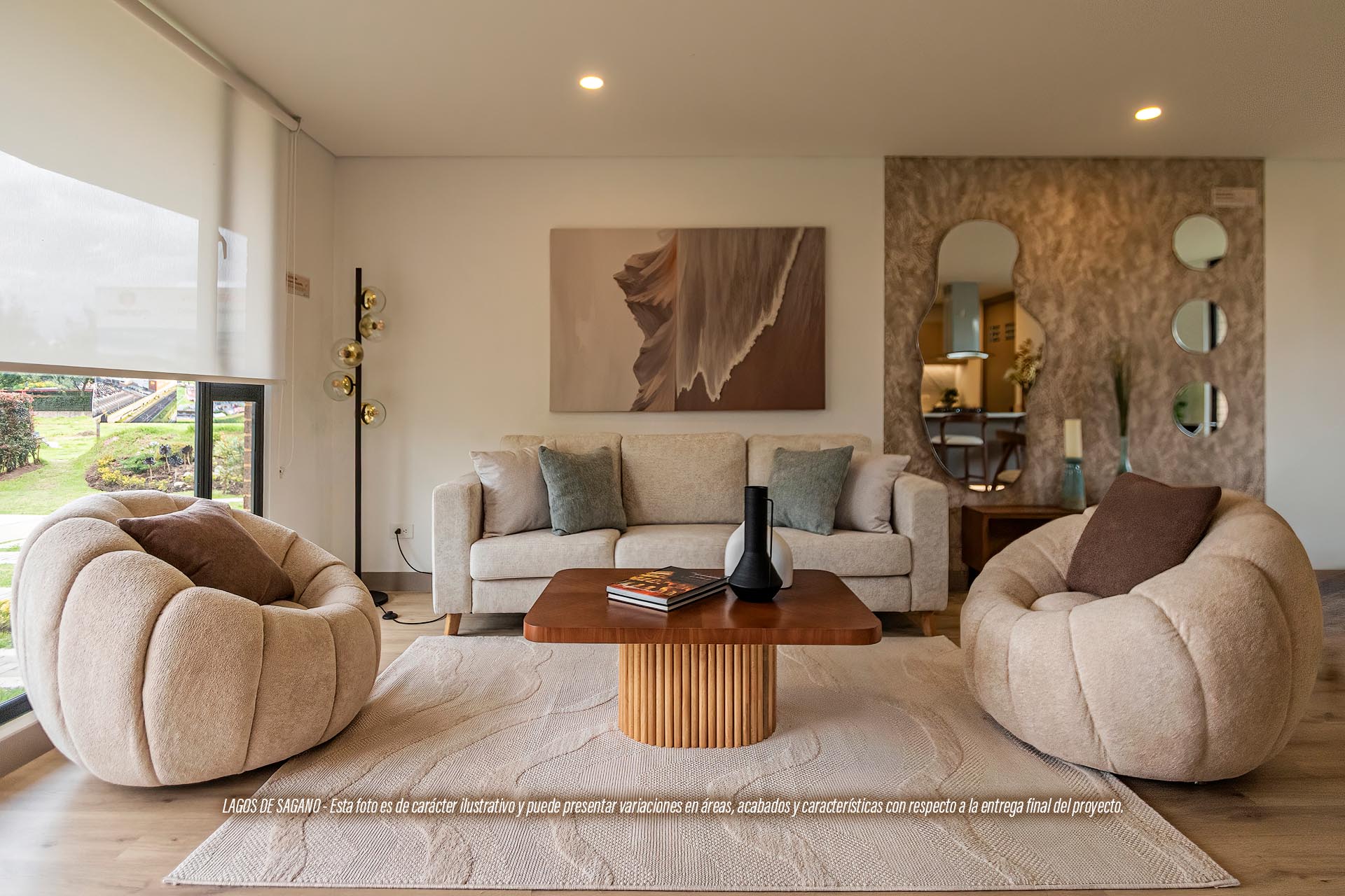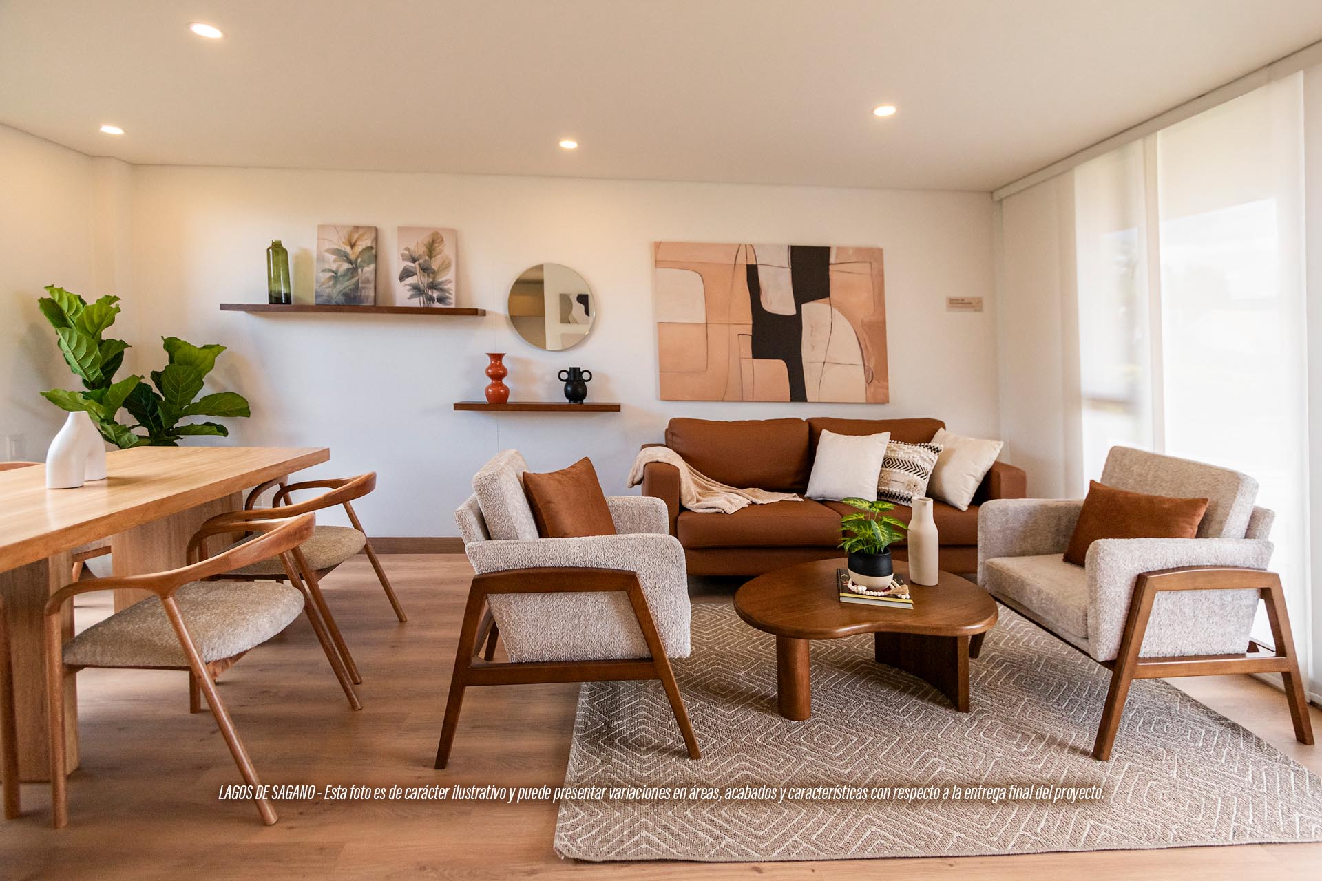 Lagos de Sagano combina diseño contemporáneo y vida verde en Cajicá: casas de dos pisos de 85 a 109 m² con jardín interior, dos parqueaderos privados, depósito, zona de lavandería y balcón en la habitación principal; techos inclinados y fachadas triangulares que le dan identidad. Configuraciones de 2 o 3 habitaciones con amplios espacios sociales, todo rodeado de lagos paisajísticos de origen antrópico y senderos naturales que ofrecen confort y estilo, en un entorno con alta proyección de valorización, a pocos minutos de Bogotá. Construido por Promotora Furatena, un consorcio entre Inversiones Milenium y Morandi Construcciones.